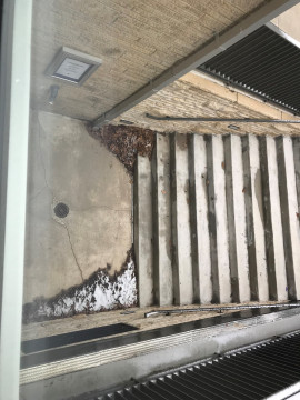Dead leaf removal from lower east stairway